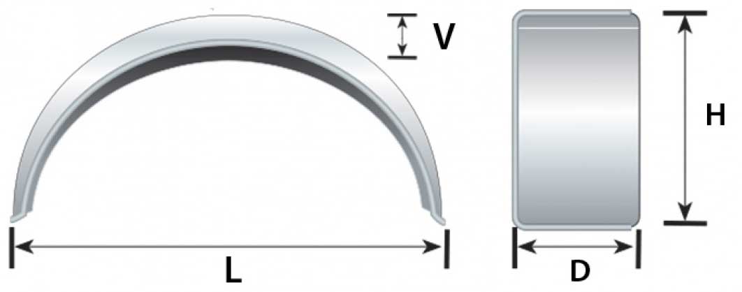 Fully galvanised 13" metal trailer mudguard with rolled edges for safety, strength and rigidity